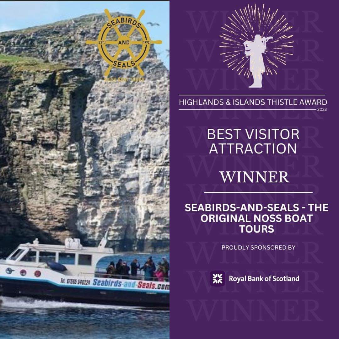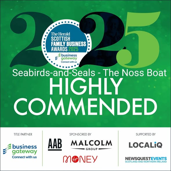 We are consistently ranked The NO.1 Noss Boat/Wildlife Experience on TripAdvisor with many excellent ratings and come highly recommended. We are delighted to kick off our 2026 season as ‘Recommended Boat Operator’ by the Seawatch Foundation and ‘Wildlife Tour Operator Of The Year’ at the Scotland Prestige Awards. In 2025 we were delighted to be finalists yet again, this time for the ‘Innovation’ category. In 2025 we were delighted to be crowned ‘Service Excellence Business Of The Year’ at the Women's Enterprise Scotland Awards and the first ever Shetland business to win such an award. In 2025 we also received a Travel & Hospitality Award, which we also won the year before in 2024. We were delighted in 2024 to achieve a Green Tourism 'Gold' Award, being Green Tourism Accredited shows that we are eco-friendly and commited to working responsibly, ethically and sustainably. Also in 2024, we were awarded 'Service Excellence' winners for Scotland at the FSB - Federation of Small Businesses. It didn't stop there for 2024, we were also selected as Finalists for ‘Best Outdoor Or Adventure Experience’ at The Highlands and Islands Thistle Awards. To top off 2024, we were Winners at ‘The Herald Scottish Family Business Awards and titled ’Scottish Family Business Of The Year (Micro).