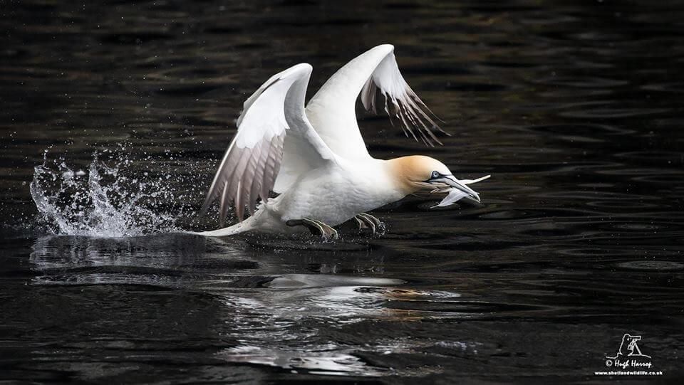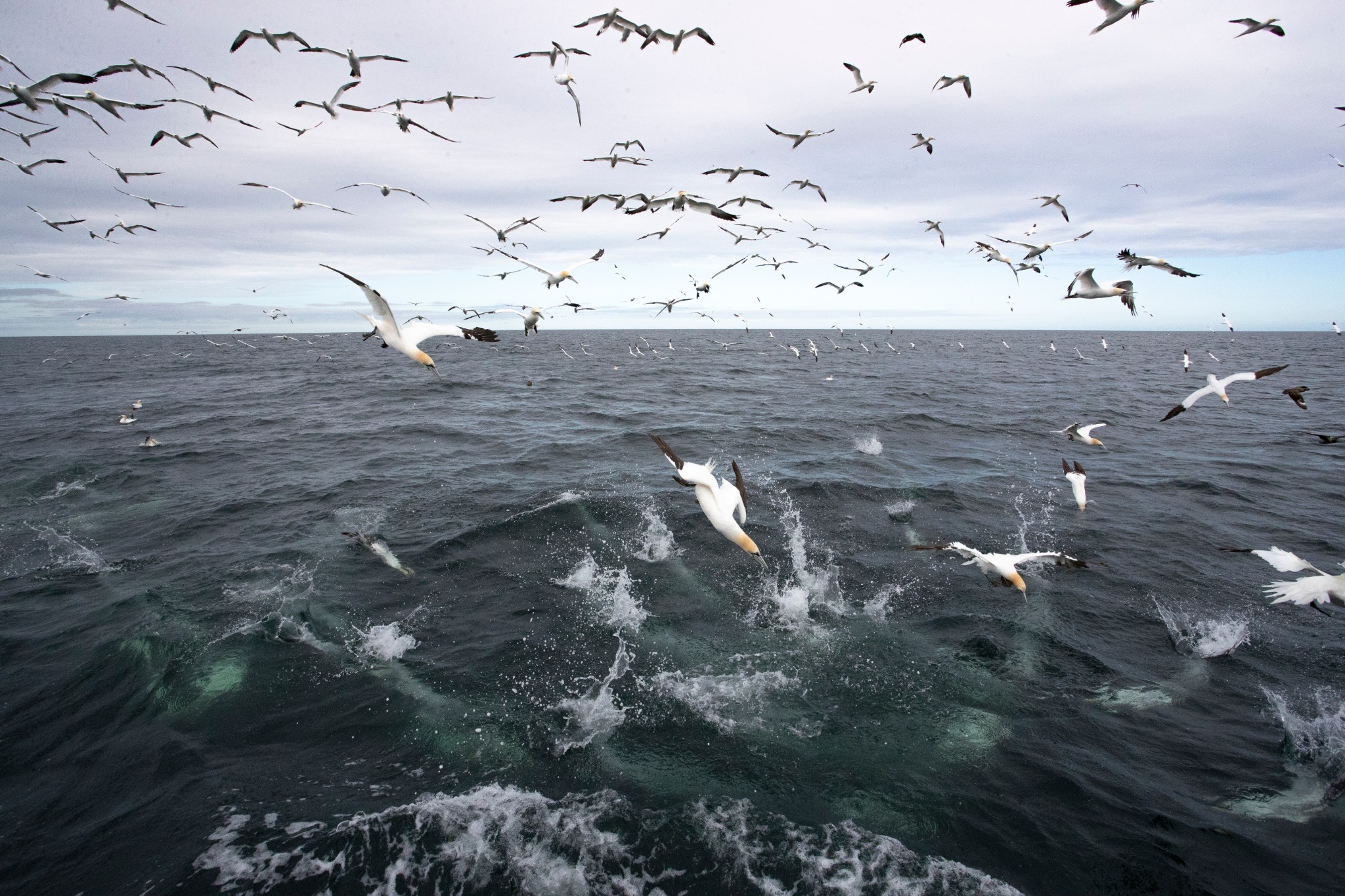 All our tours take you right around Bressay & around the cliffs of the famous Noss National Nature Reserve. This trip to Noss is an amazing wildlife spectacle and allows you to enjoy Shetland’s plethora of seabirds and seals, as well as spectacular views. You get unbelievably close to the awe-inspiring sights and sounds of this extraordinary seabird metropolis, which is home to 25,000 Northern gannets, as well as thousands of guillemots, black guillemots, puffins, razorbills, gulls, shags and skuas. You will come eye-to-eye with beautiful blue-eyed gannets and immerse yourself in the unforgettable clamour of a thousands-strong ‘choir’ or different bird calls – a sound you’ll never forget. Superb opportunities to see and photograph Shetland’s wildlife against the stunning backdrop of the 181-metre-high Noss sandstone cliffs. We bring along fresh fish to give you a guaranteed opportunity to see gannets encircling and diving right alongside the boat.
